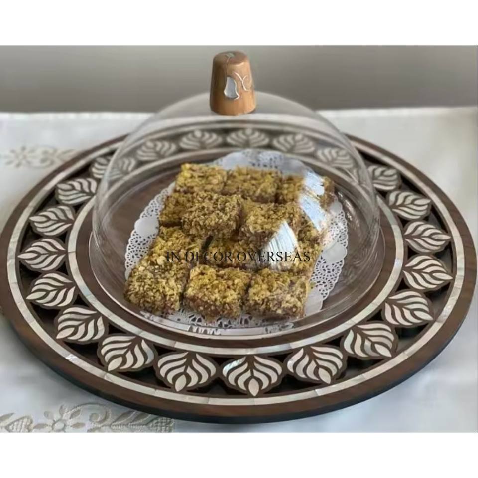 Plato para servir de chocolates y dátiles de forma redonda de diseñador de aspecto llamativo con cúpula de cubierta de vidrio transparente a un precio impresionante