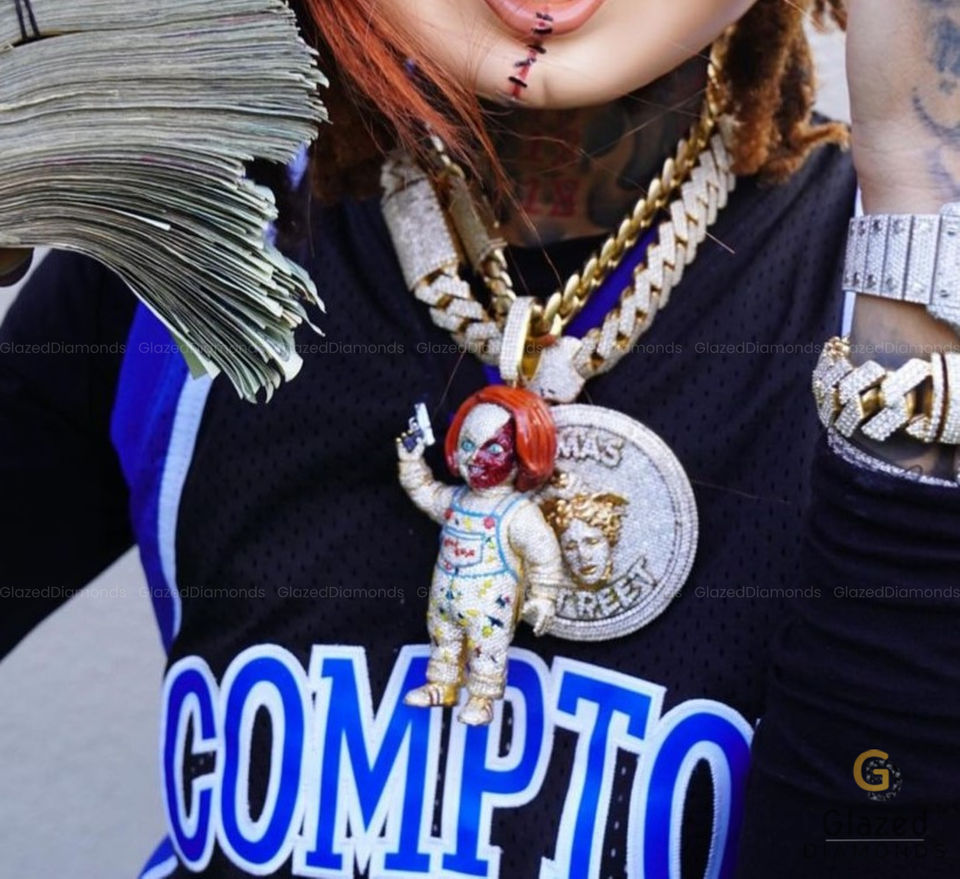 Colgante Hip Hop Moderno y Llamativo, Completamente Engastado con Diamantes de Laboratorio de Corte Brillante Redondo en Plata de Ley 925