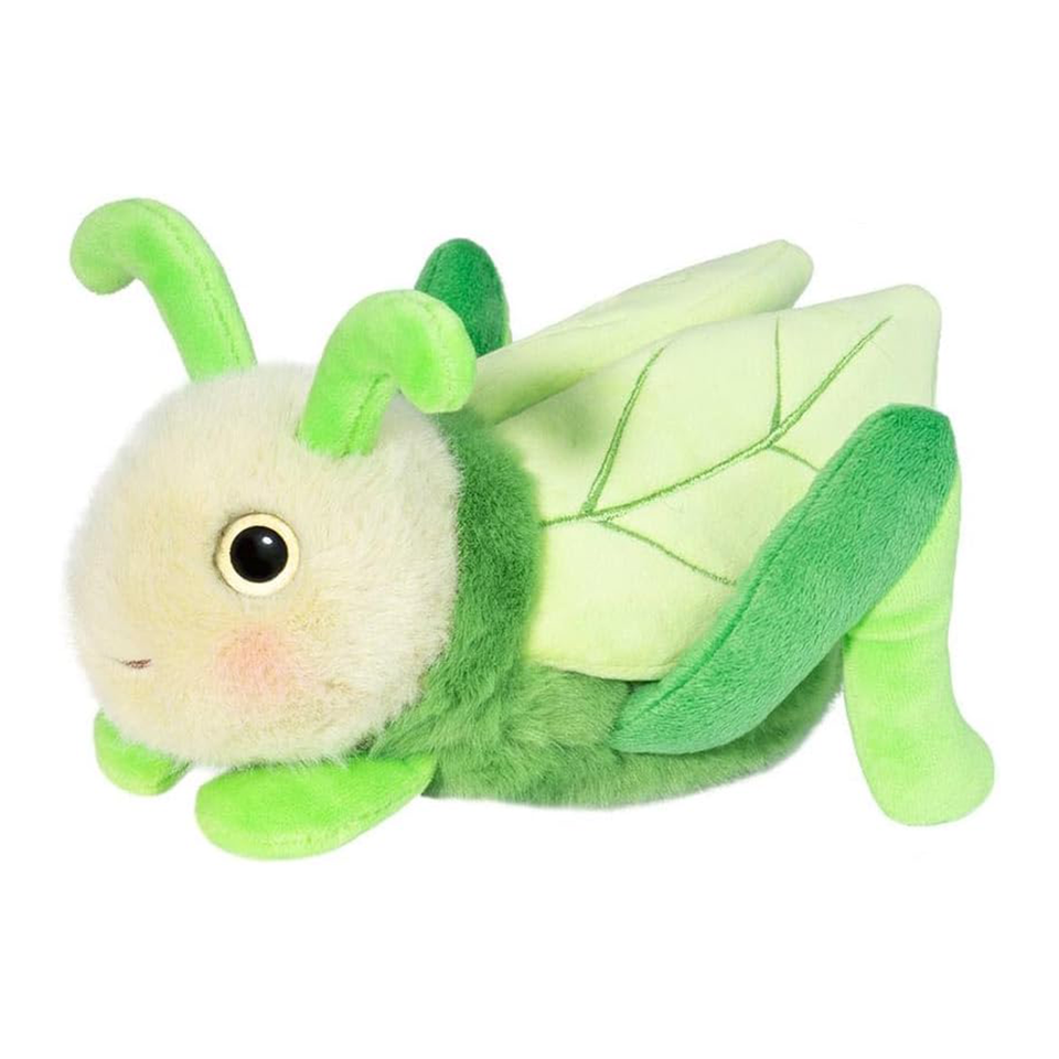 Llamativo langosta de dibujos animados verde vivo con antenas alegres cubierta de tela suave alas realistas ojos de plástico juguete de saltamontes de peluche