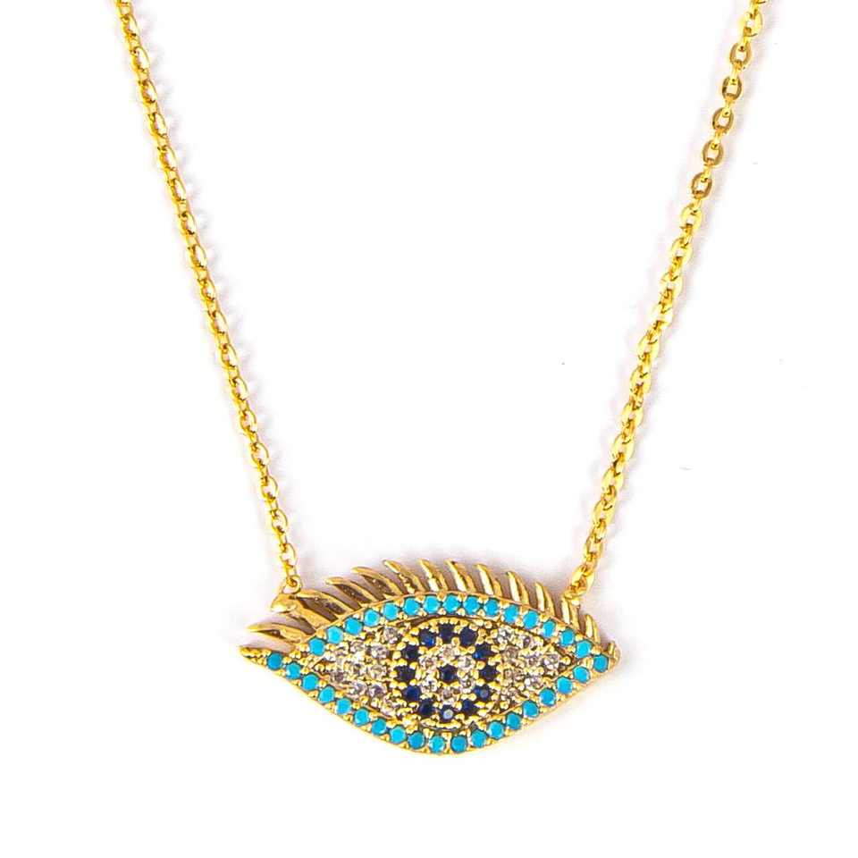 Collar de ojo de oro con circón chapado rodio diamante patrón geométrico Vintage estilo de moda Cadena de cuerda de latón de acero inoxidable