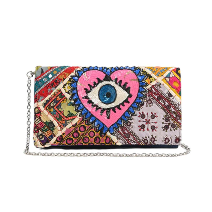 Hermoso diseño de patrón de ojos bolso de hombro cruzado correa ajustable larga multicolor elegante para fiesta aniversario de boda