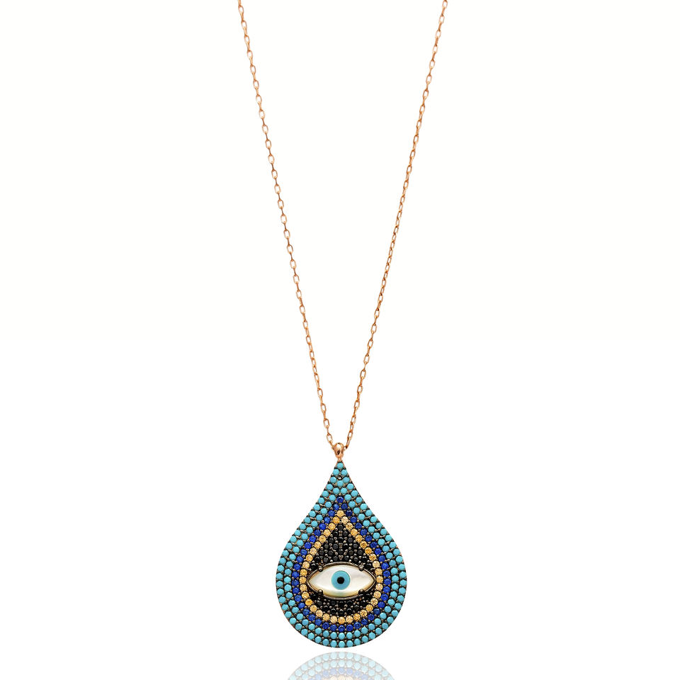 Ojo pera diseño circón piedra encanto colgante turco hecho a mano venta al por mayor 925 joyería de plata esterlina