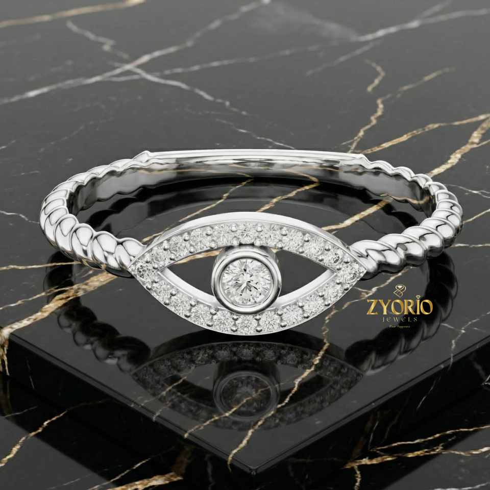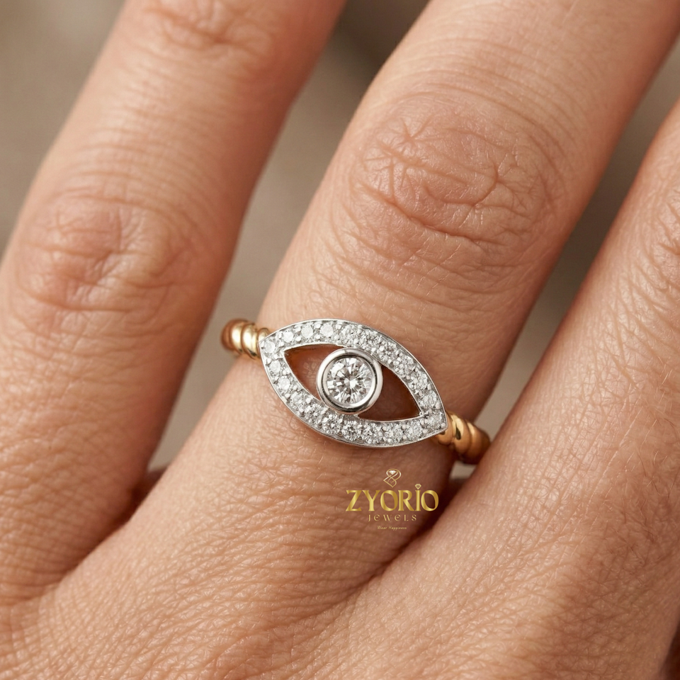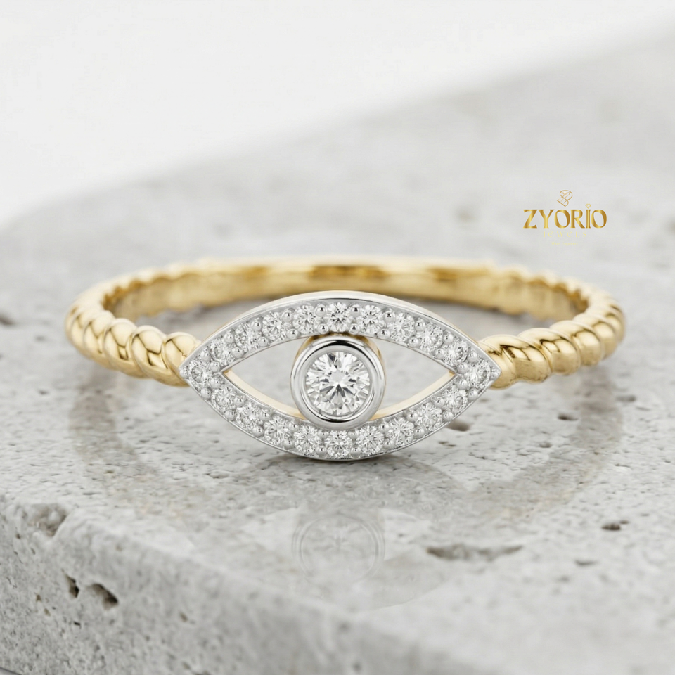 Anillo de Oro de 14K con Diamante de Laboratorio de Corte Redondo, Bisel Pavé, Joyería para Mujer