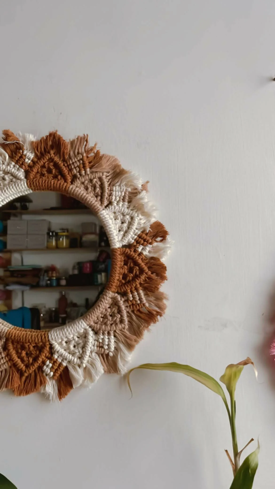 Espejo montado en la pared de macramé de Color rojo con forma de ojo, acabado Natural de aspecto estándar, decoración navideña colorida y decorativa