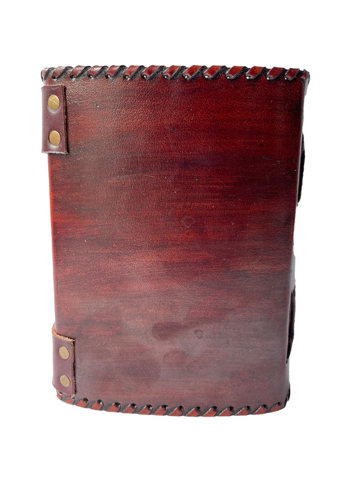 Ojo de piedra tachonado patrón de costura hecho a mano diario de cuero genuino hecho a mano Deckle Edge papeles diario en blanco con C-Lock antiguo