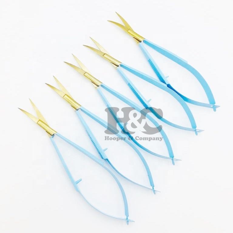 Tijeras para pestañas de cejas, Punta dorada azul claro, tijera de primavera sostenible hecha a mano, tijera de alta demanda, logotipo de precio bajo aceptado