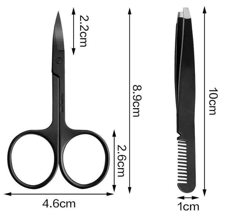 Tijeras para cejas con peine y pinzas, multiusos, de acero inoxidable, curvadas, pequeñas, para pestañas, peine y pinzas, ANAAIF