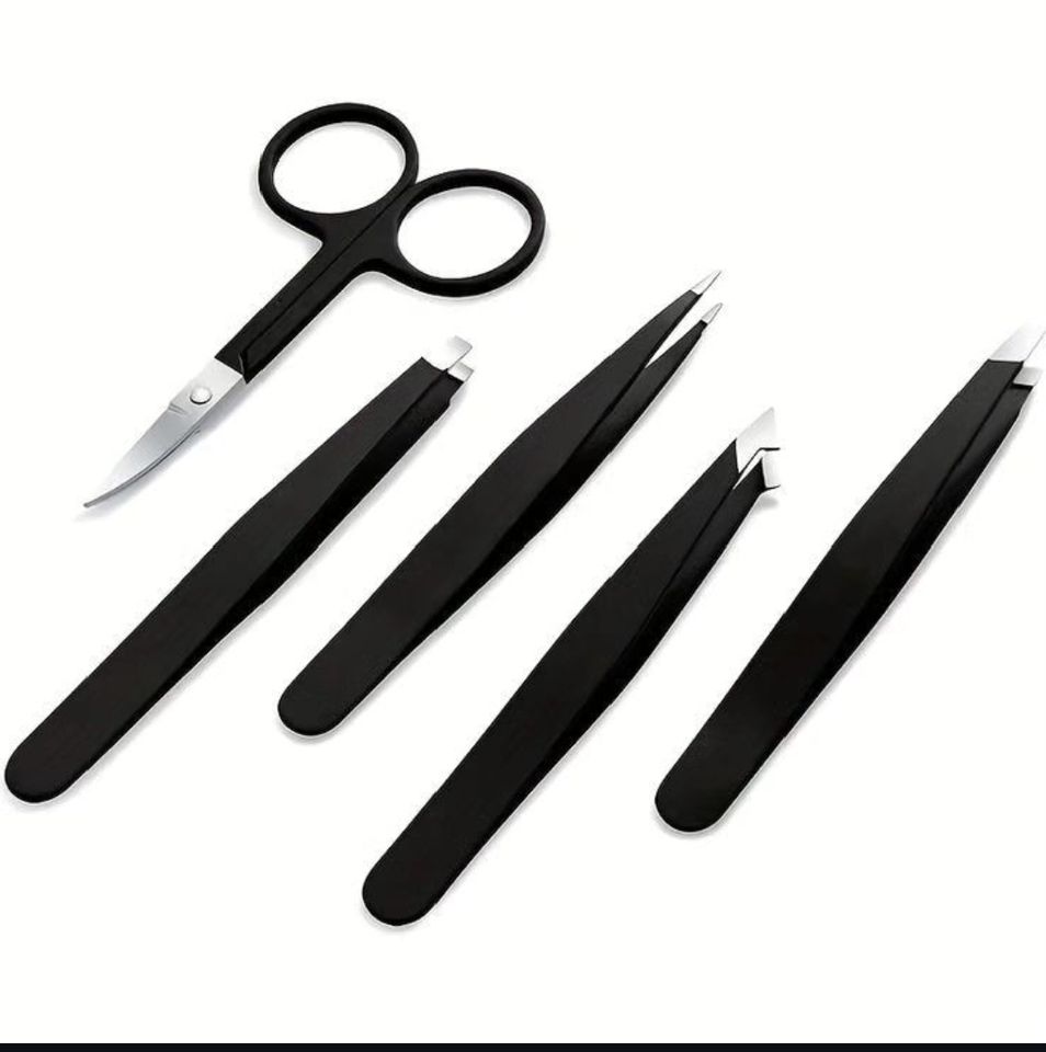 Juego de pinzas para cejas de calidad superior con tijeras para cutículas, Color negro mate, pinzas para cejas aceptadas con logotipo personalizado de 5 piezas