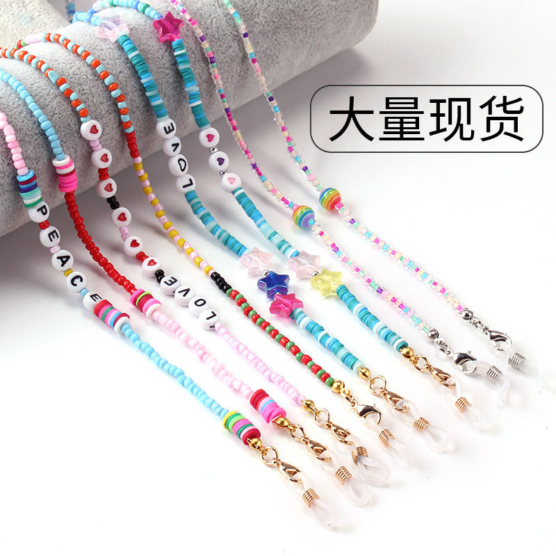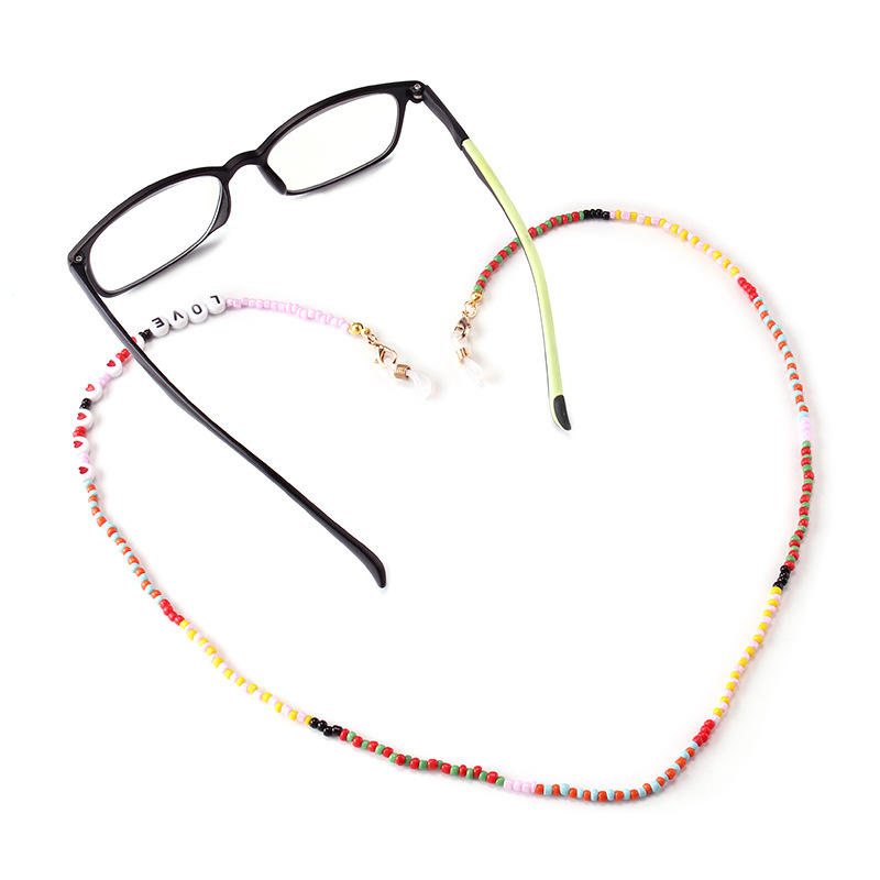 Cadena para Gafas y Mascarillas, con Cuentas de Colores Mixtos, Antideslizante, de Aleación, Estilo Europeo y Americano, Primavera 2024