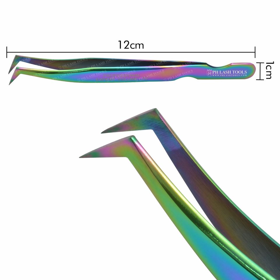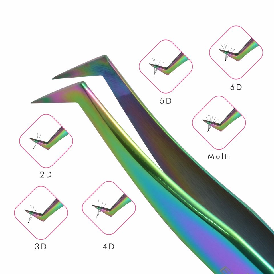 Pinzas para extensión de pestañas Tipo L, con diseño de corte Base multicolor, pinzas de volumen y aislamiento, de etiqueta privada