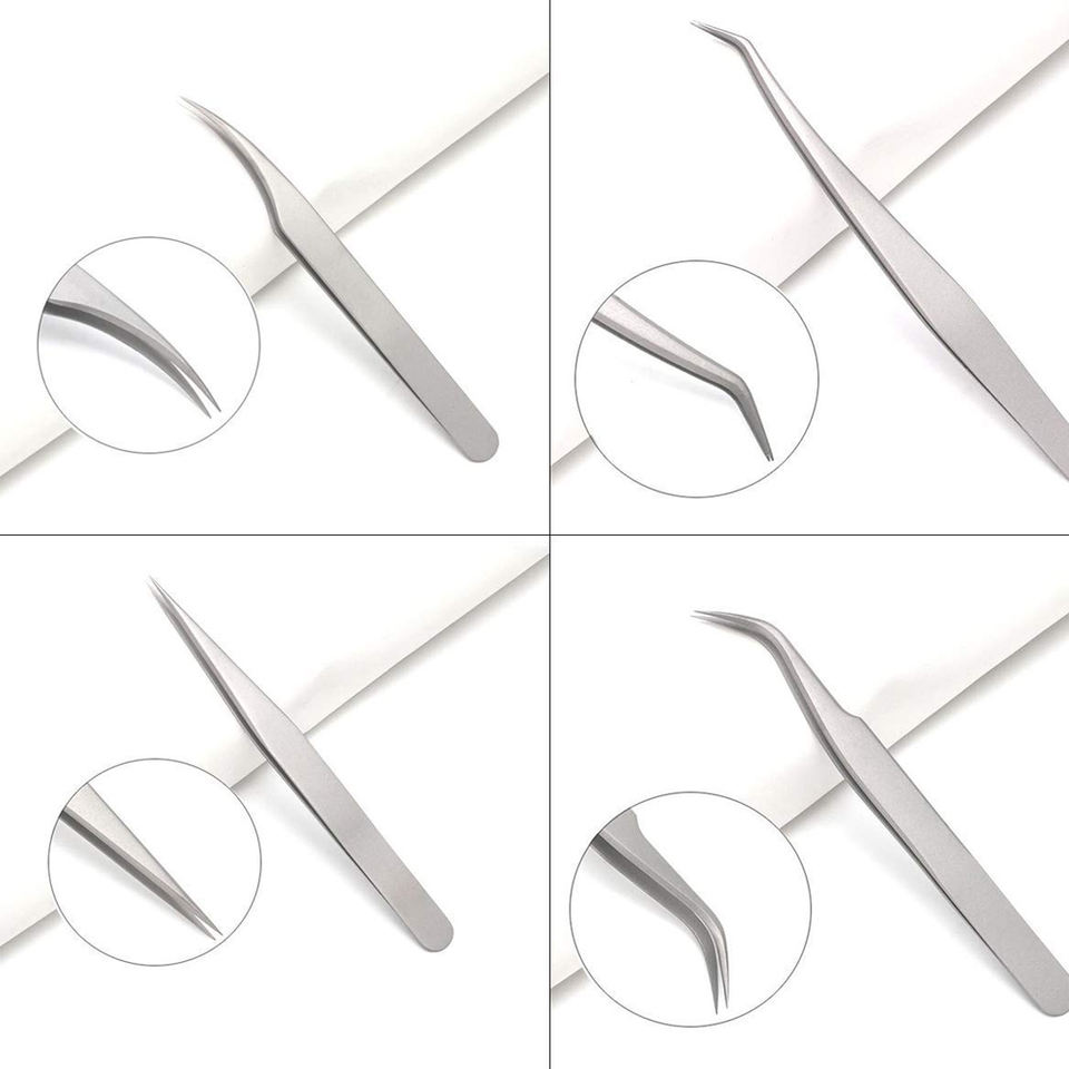 Juego de pinzas para extensión de pestañas, 5 unidades para extensión de pestañas voluminosas y ventiladores fáciles, pinzas de extensión de pestañas de acero inoxidable