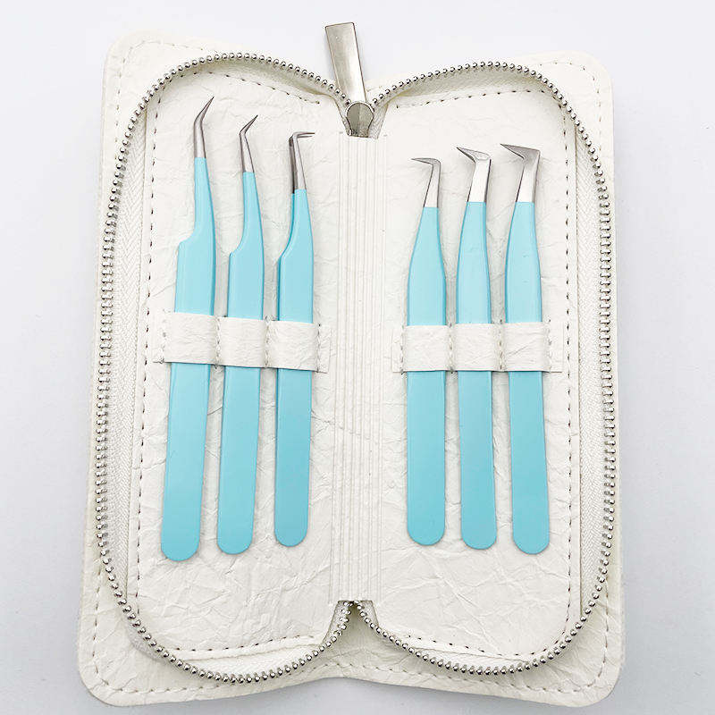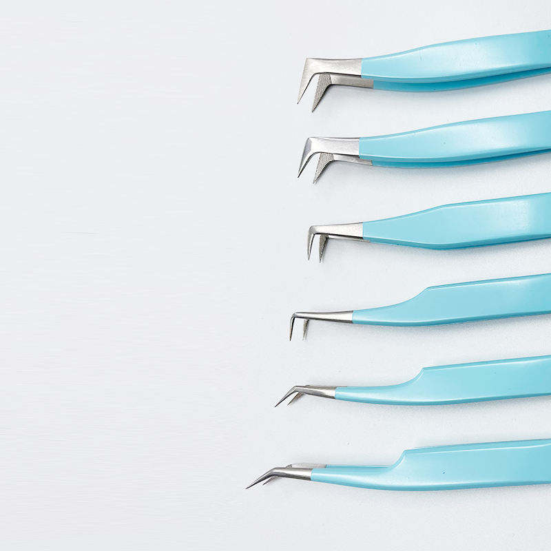 Juego de pinzas de extensión de pestañas inclinadas de acero inoxidable con punta de fibra de pinzas de pestañas de volumen en ángulo de 45/90 grados para uso de cejas