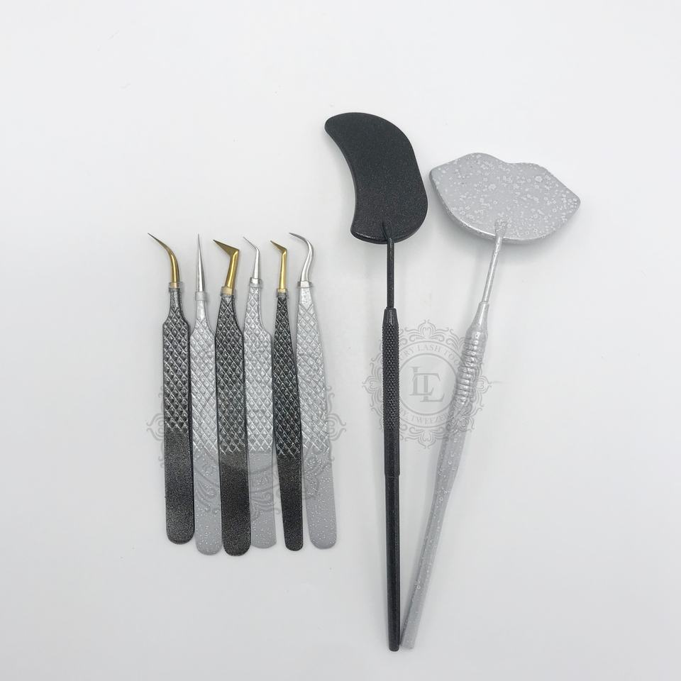 Pinzas de extensión de pestañas de acero inoxidable sostenible con logotipo personalizado, pinzas de Punta dorada, revestimiento de polvo múltiple, acabado de espejo