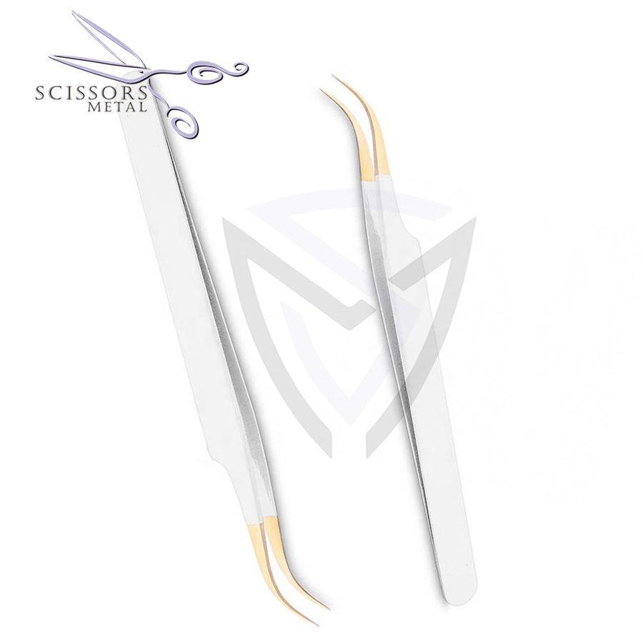 Pinzas para pestañas para extensión Etiqueta privada Profesional Acero inoxidable Nuevas pinzas para pestañas de alta calidad Color blanco y dorado