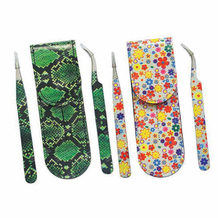 Name:Eyelash Tweezers 2 piece Set with Magnet Button Pouch