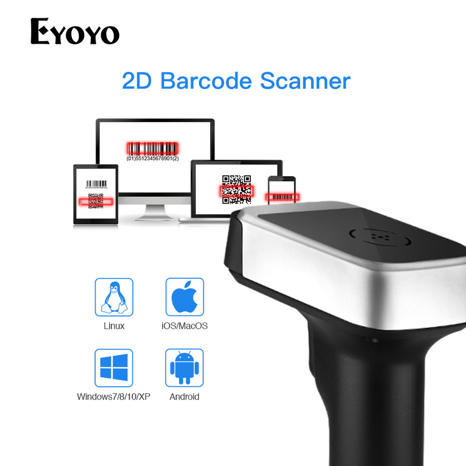 Eyoyo-escáner de código de barras EY-1900 portátil, 3 en 1, USB, con cable, 2,4G, BT, Bluetooth, inalámbrico, 1D, 2D, pistola para PDF417, matriz de datos, UPC