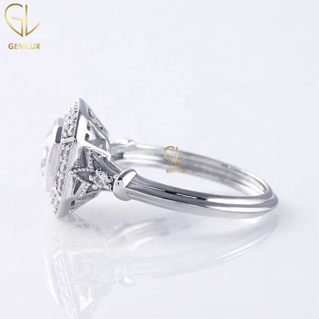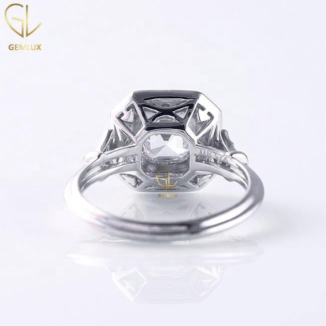 F vs1 Asscher cut 2 Ct Piedra central Corte redondo 0,20 Ct Piedra lateral Art Deco 14K Oro blanco Labgrown Diamante Compromiso Anillo de mujer