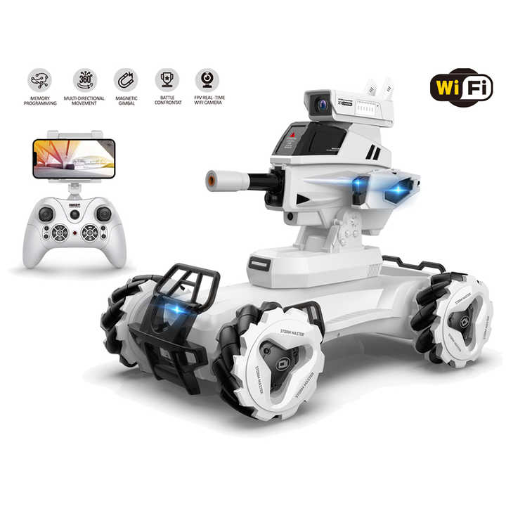 Tanque RC con Cámara WiFi FPV F06, Robot de Combate Inteligente con Control Remoto, Dispara Balas de Agua, Incluye Cargador, Listo para Usar