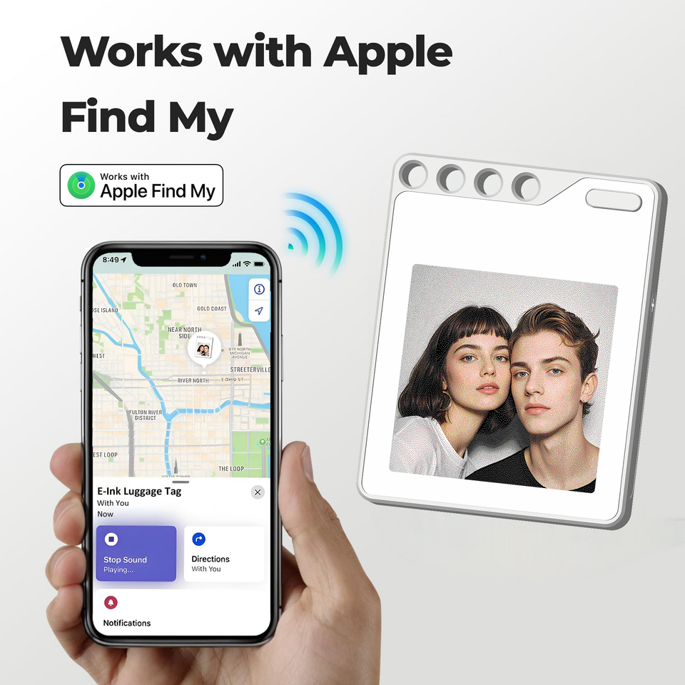 Rastreador Inteligente F10 con Pantalla de Tinta Electrónica de 1.54 Pulgadas, Compatible con Apple Find My, Imágenes Personalizables, Texto, QR, Etiqueta Electrónica Multi-idioma