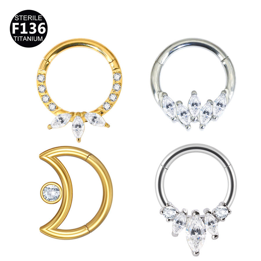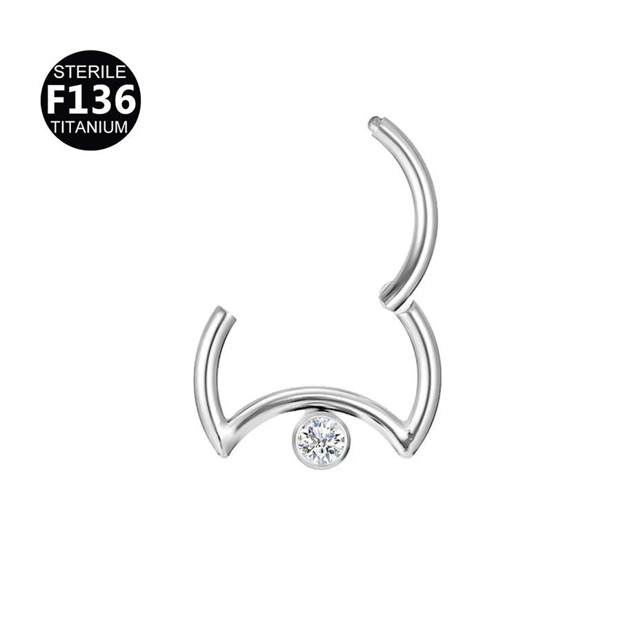 Pendientes de Aro para Nariz con Forma Geométrica de Luna y Ojo de Caballo, de Cristal de Tungsteno F136, para Septum, Tragus, Hélix, Joyería para Piercings