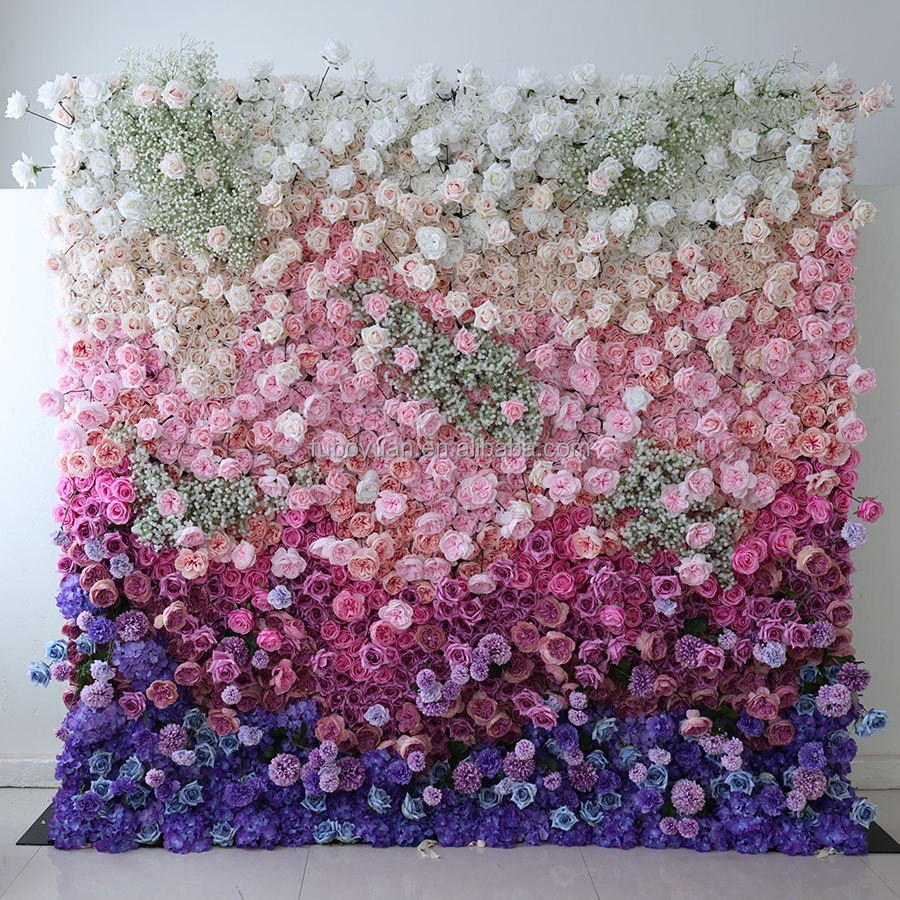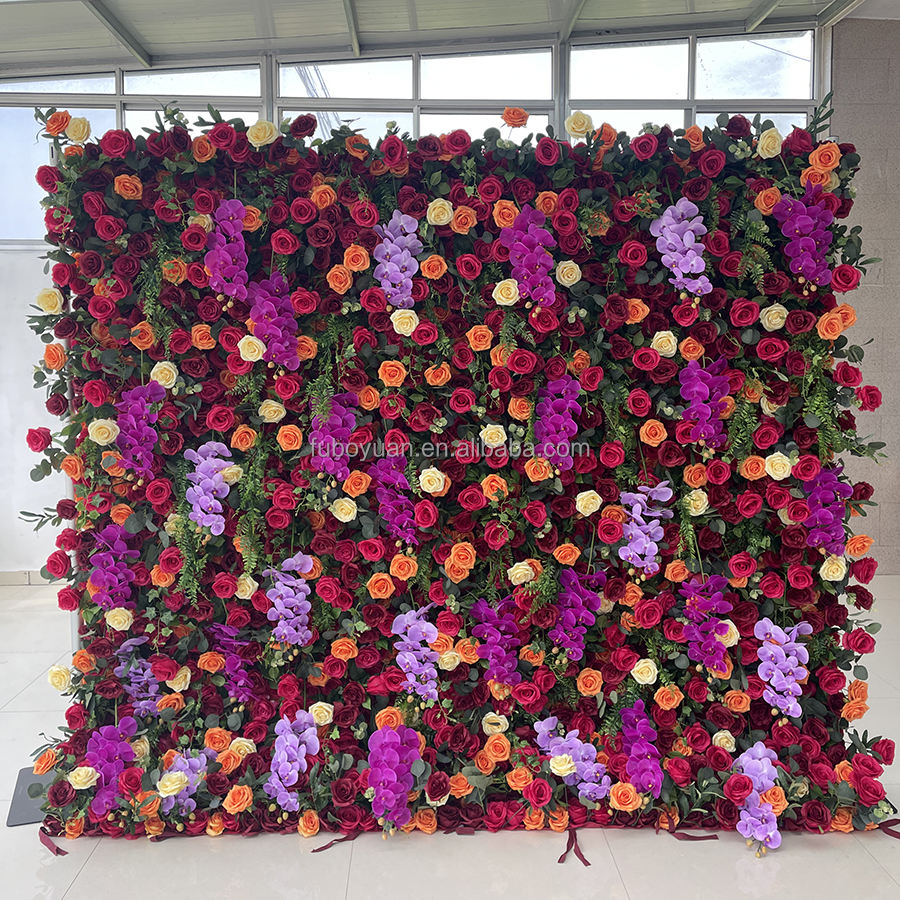 F315 simulación de fondo de boda enrollable Pared de rosas 8*8 Pared de flores gota trasera colorida flor artificial 5d para decoración de pared