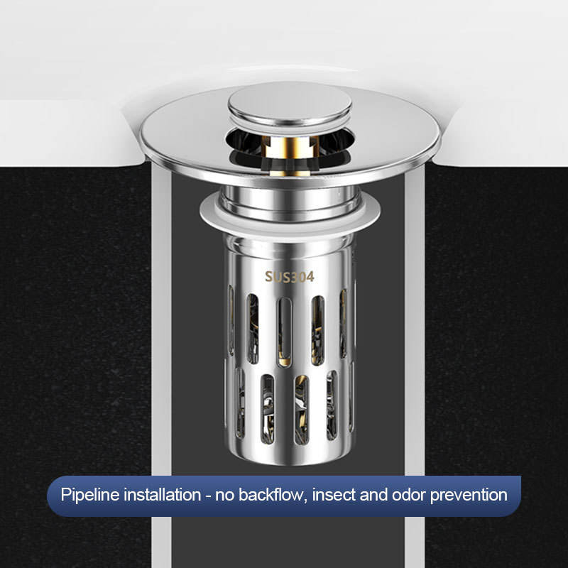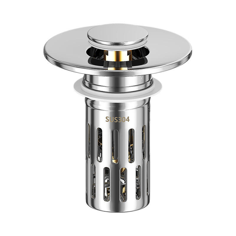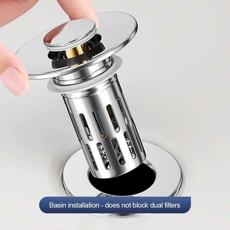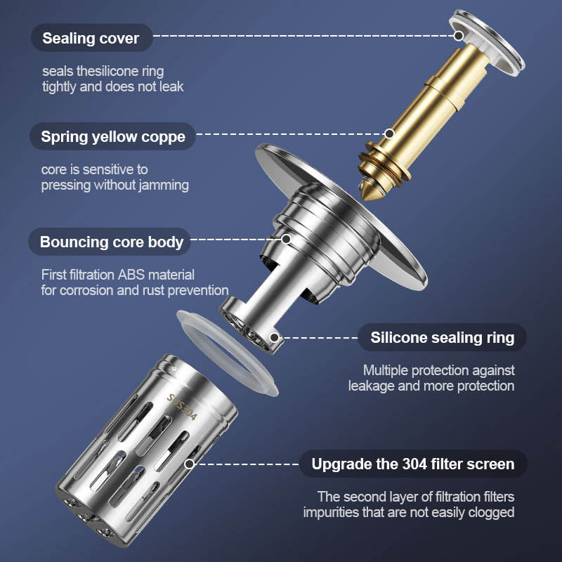 Filtro de desagüe con botón pulsador F46, de acero inoxidable, ABS y cobre, con núcleo de rebote para fregadero de encimera, fácil de limpiar