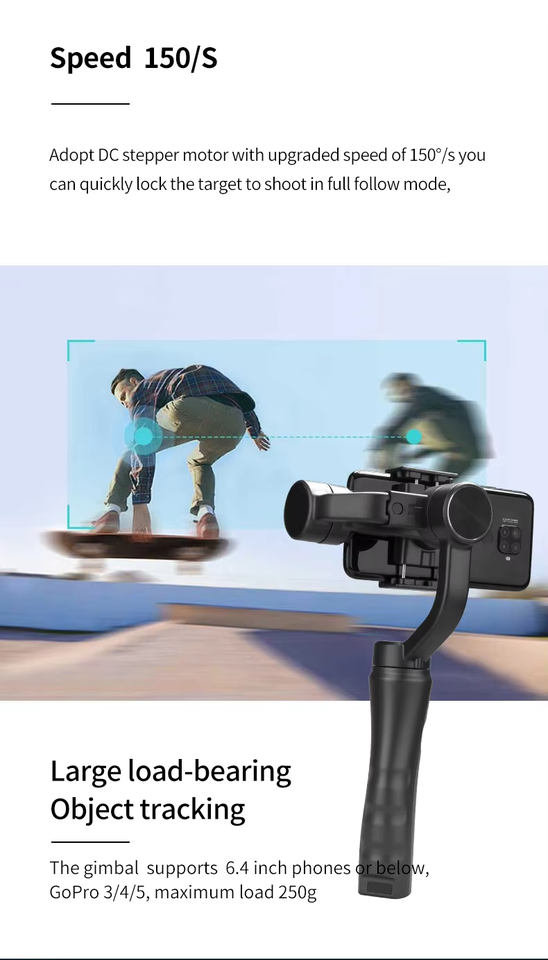 F6 Mejor estabilizador de video económico: gimbal de 3 ejes para iPhone y móviles, portátil y estable