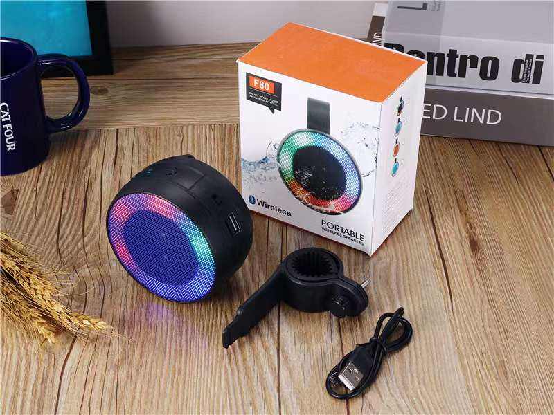 F80 bicicleta de ciclismo 2 pulgadas Mini BT altavoz inalámbrico impermeable con RGB LED HiFi Bass estéreo Subwoofer para exteriores portátil