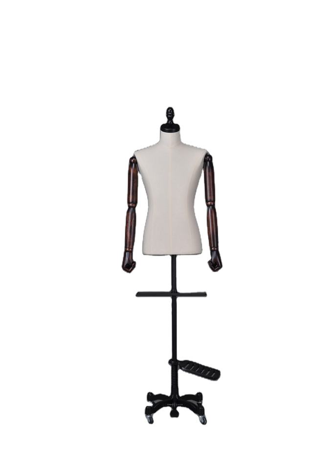 BUSTO MACHO ENVUELTO DE TELA CON BRAZOS DE MADERA BARRA DE PANTALONES y ESTANTE DE ZAPATOS