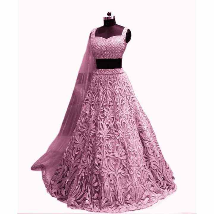 FABULOSO TRABAJO DE DISEÑO DE BORDADO DE RED LEHENGA CHOLI CON DUPATTA ROSA CLARO