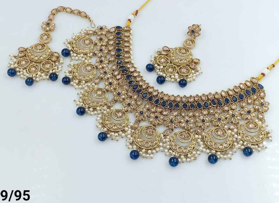 FANCY ANTIGUO TRADICIONAL Y DE MODA TONO DORADO KUNDAN PERLA GARGANTILLA COLLAR PENDIENTES CONJUNTO CON MANGTIKA PARA MUJER Y NIÑA