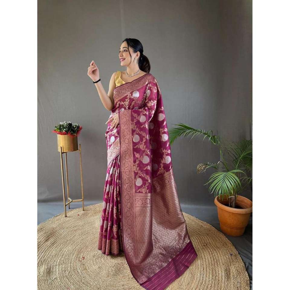 FANCY BANARASI SEDA ORO ZARI TEJIDO TRABAJO SAREE CON BLUSA SIN COSTAR RANI