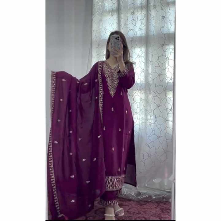 FANCY CHINON SECUENCIA DE BORDADO DE SECUENCIA TRABAJO FONDO SUPERIOR CON LAVANDA DUPATTA