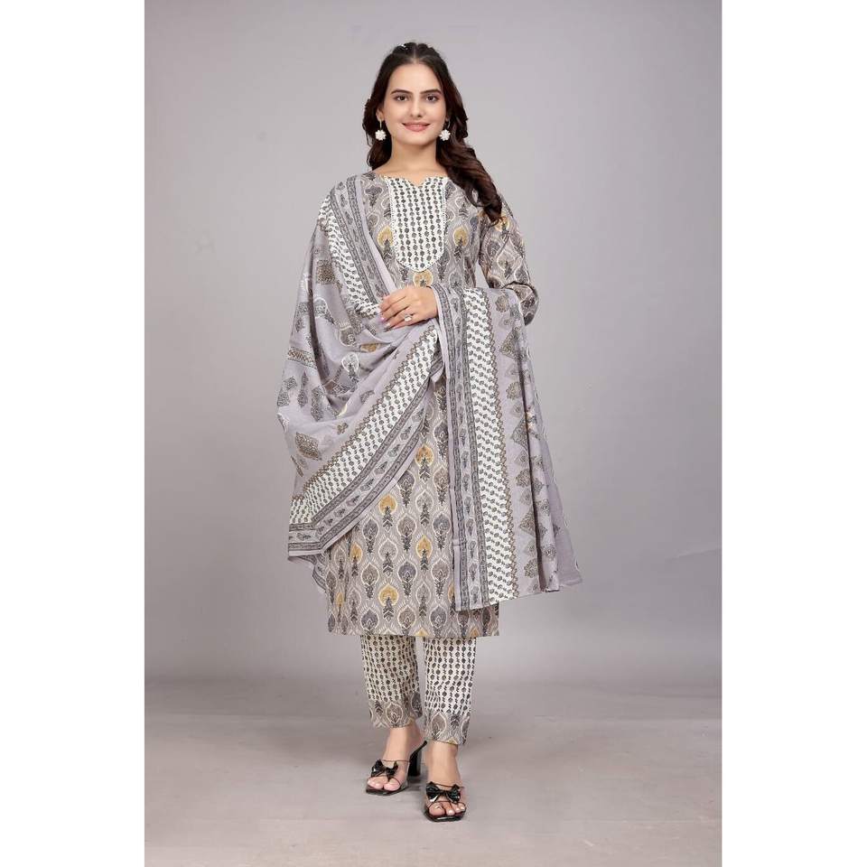 FANCY ALGODÓN MEZCLA FOIL ESTAMPADO TOP INFERIOR CON DUPATTA DE BLANCO
