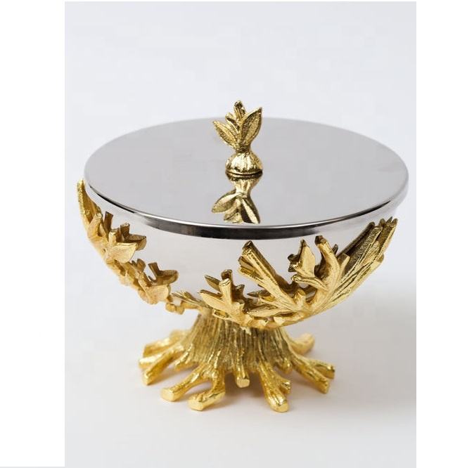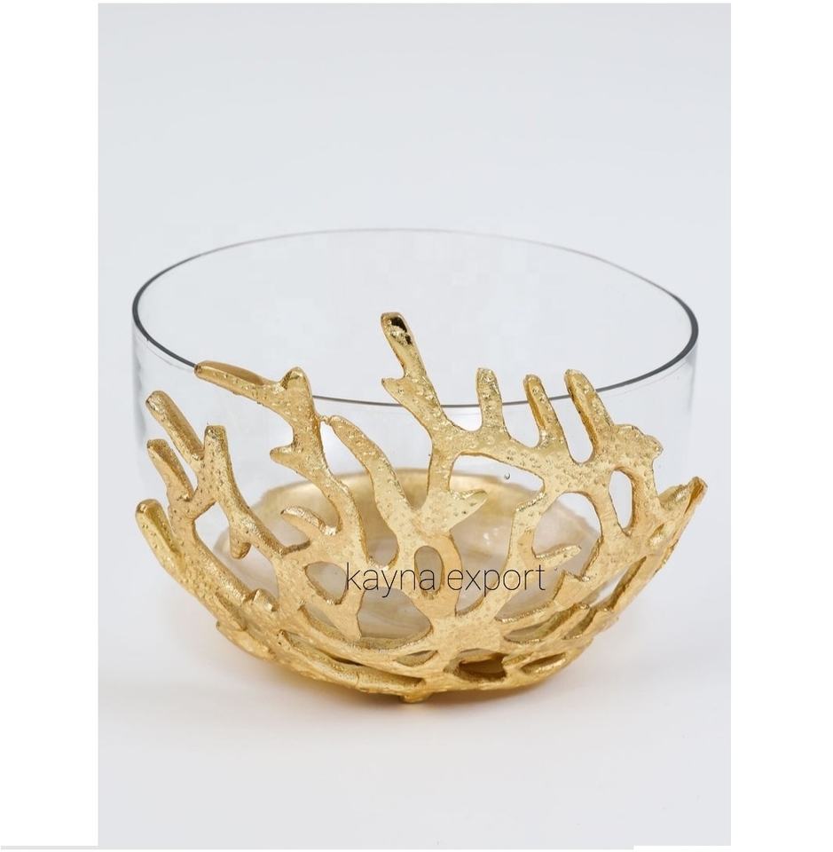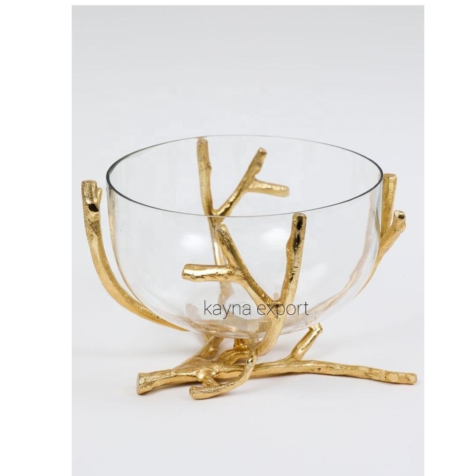 Exquisito Soporte Decorativo Chapado en Oro Pulido con Cuenco de Cristal para Frutos Secos y Dátiles, Colección Ramadán para Fiestas