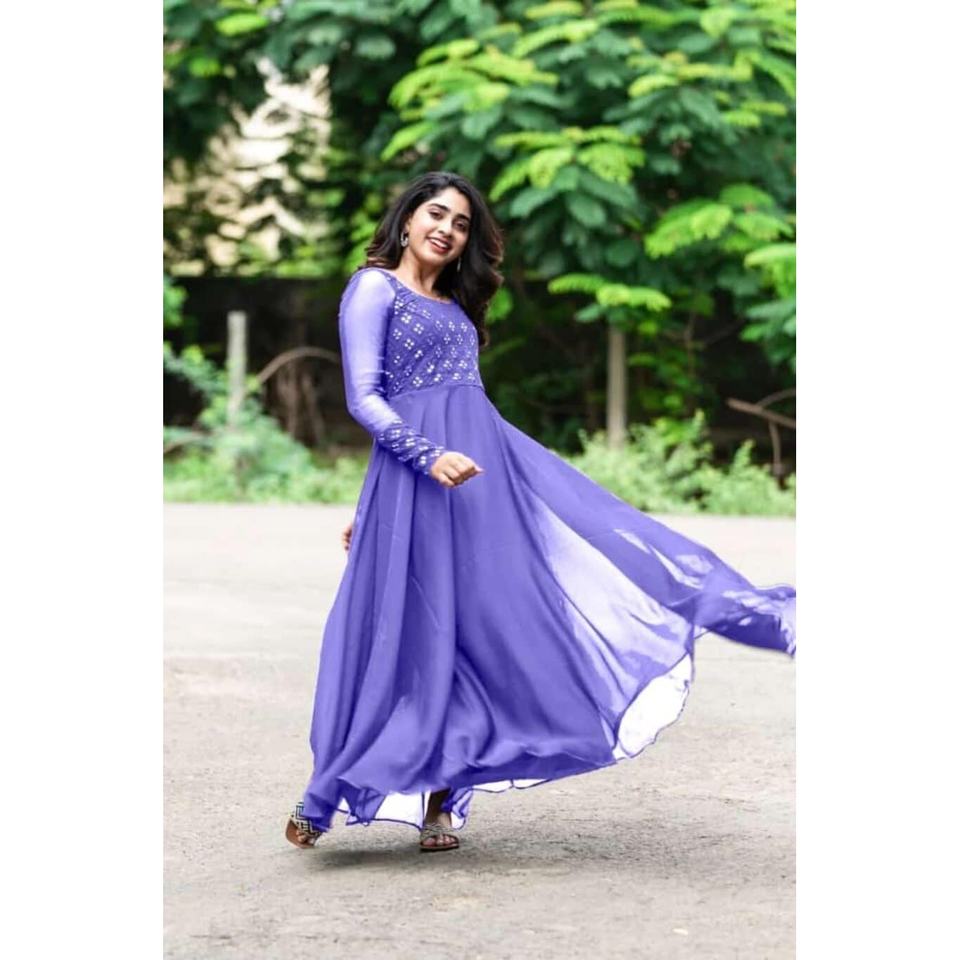 Vestido de Fiesta de Georgette con Bordado y Pedrería, Color Lavanda, para Adultos