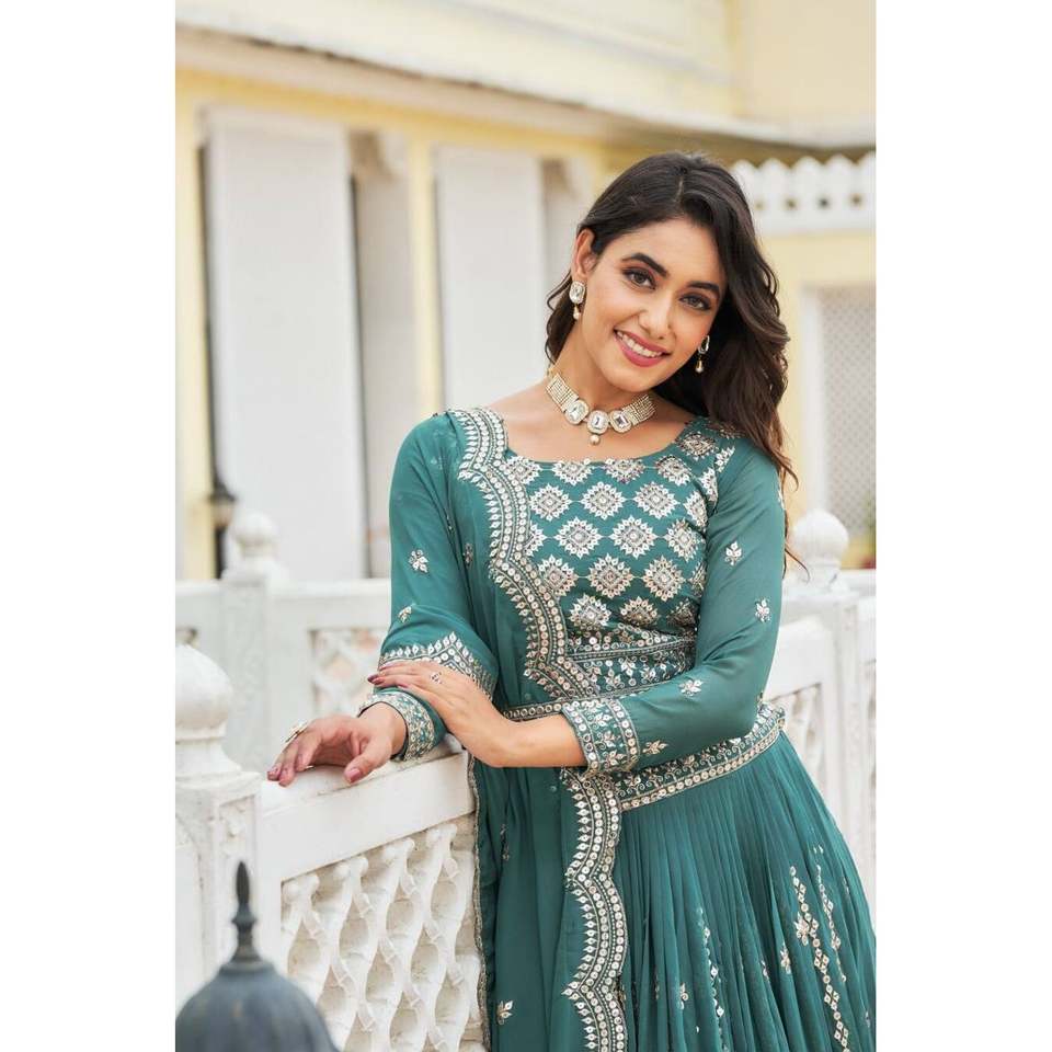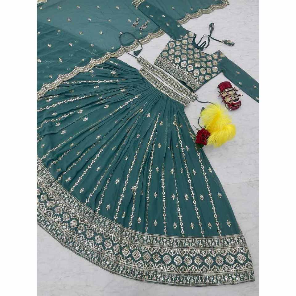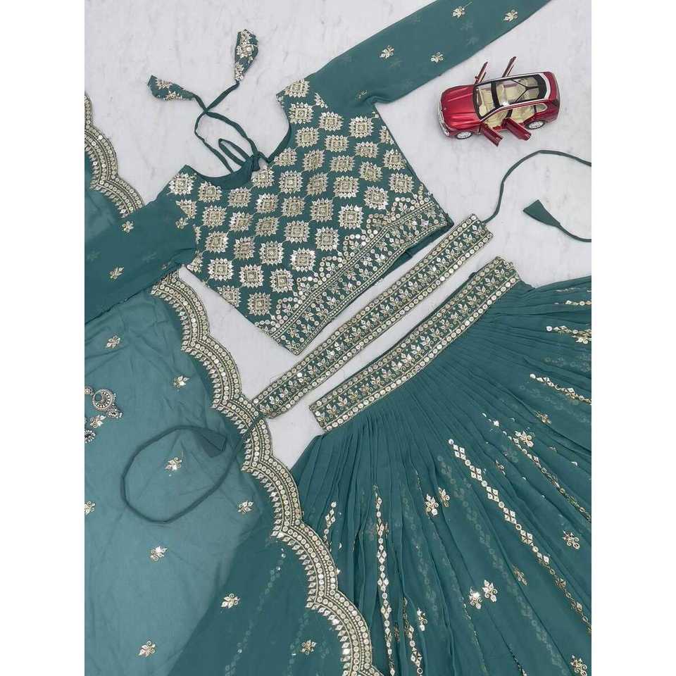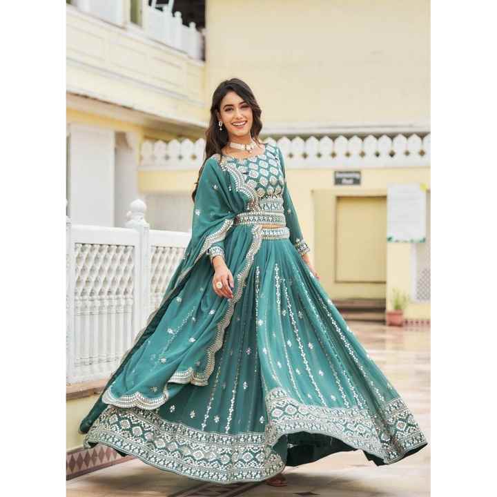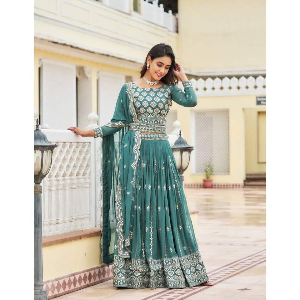 FANCY GEORGETTE BORDADO SECUENCIA TRABAJO LEHENGA CHOLI CINTURÓN CON DUPATTA SKY ROPA lehenga choli