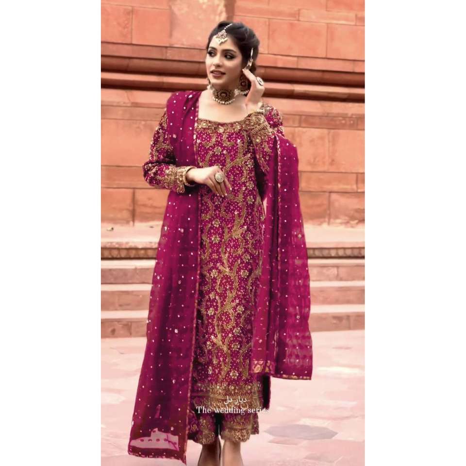 FANCY GEORGETTE EMBROIDREY STONE TRABAJO TOP PALAZZO CON DUPATTA ROSA