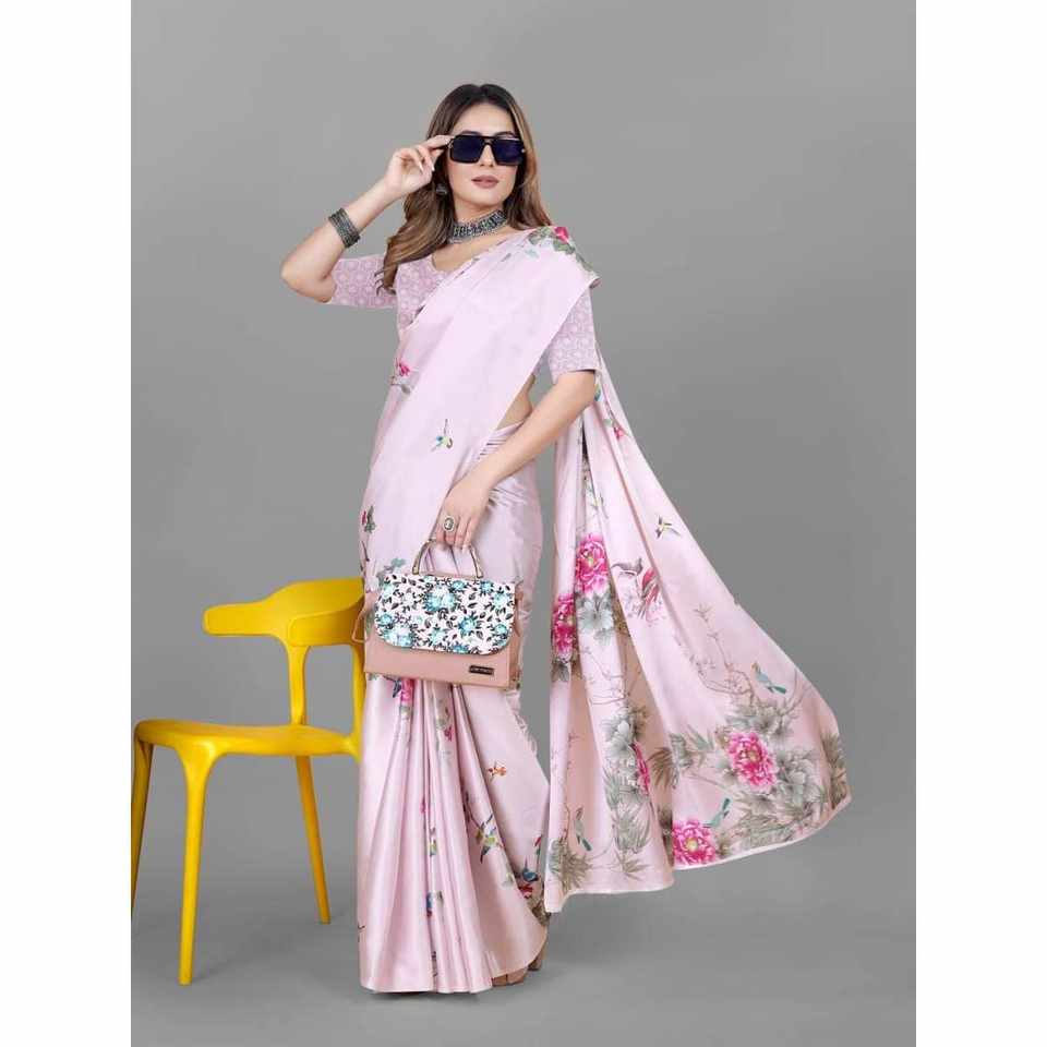 FANCY JAPAN CRAPE ESTAMPADO DIGITAL SAREE CON BLUSA SIN COSTAR BEBÉ ROSA