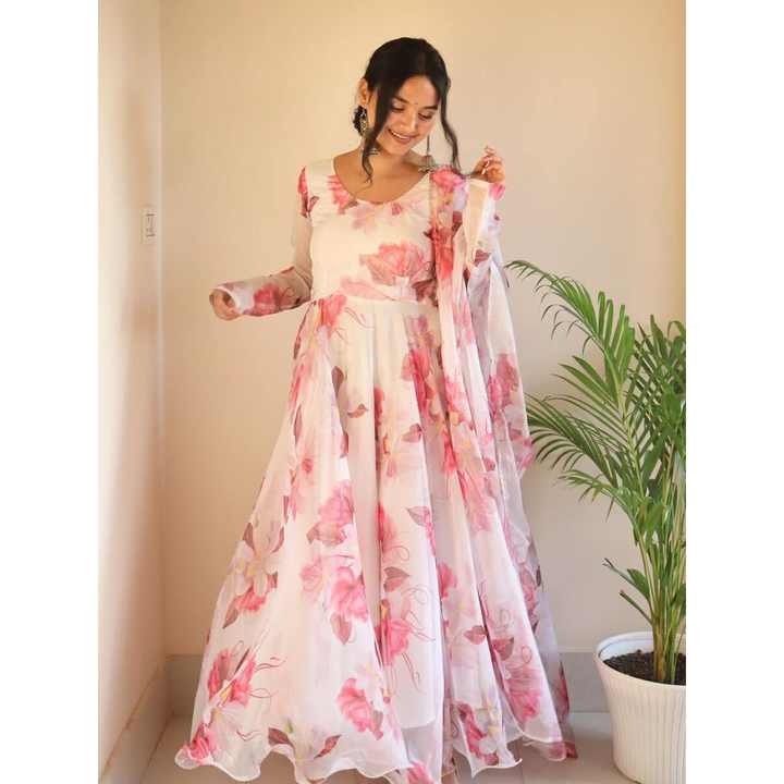 FANCY ORGANZA VESTIDO DE SEDA ESTAMPADO DIGITAL CON DUPATTA BLANCO
