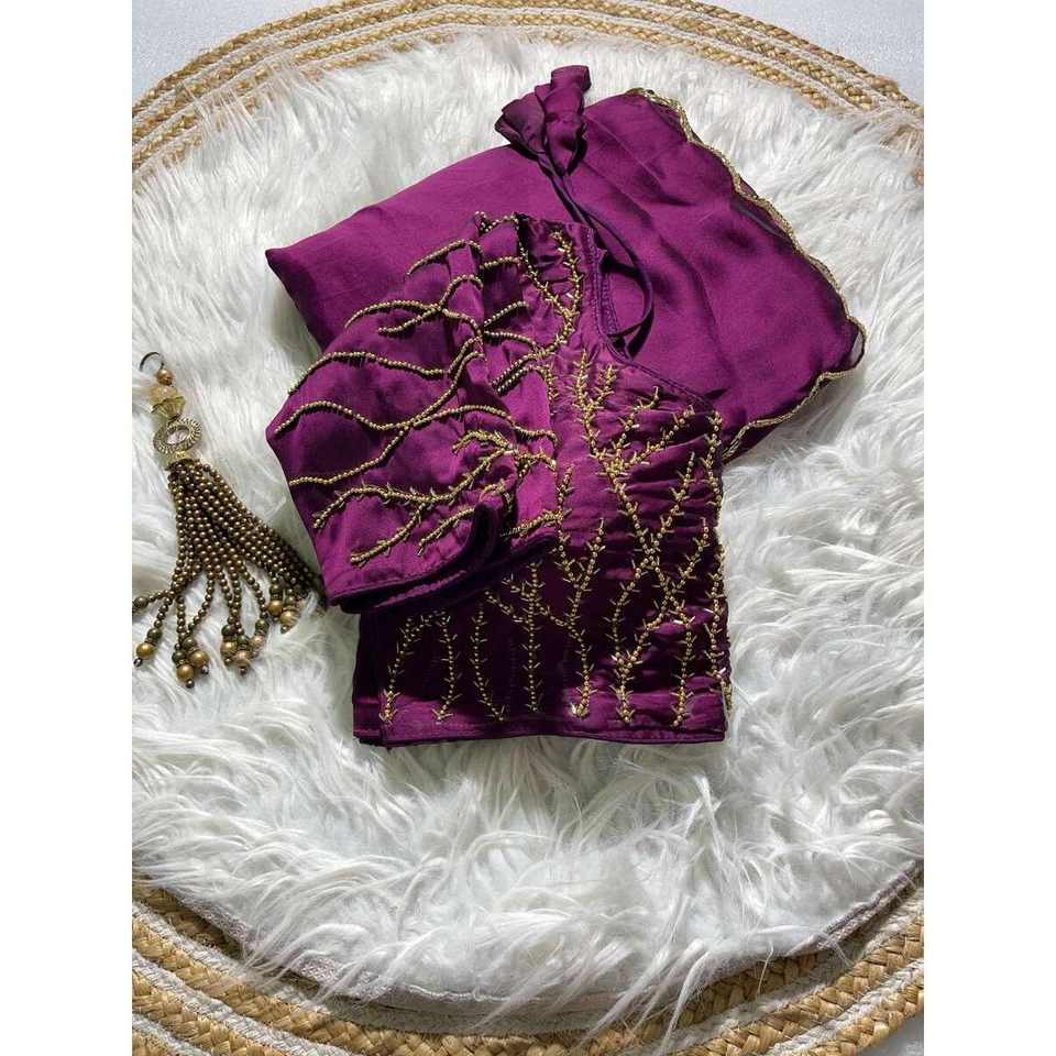 FANCY RANGOLI SEDA CUTDANA KHATLI TRABAJO SAREE CON BLUSA COSTADA VINO