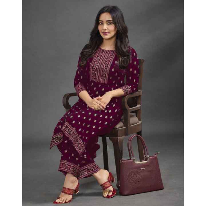 FANCY RAYON FOIL PRINT TOTALMENTE COSTADO KURTI CON PALAZZO VINO