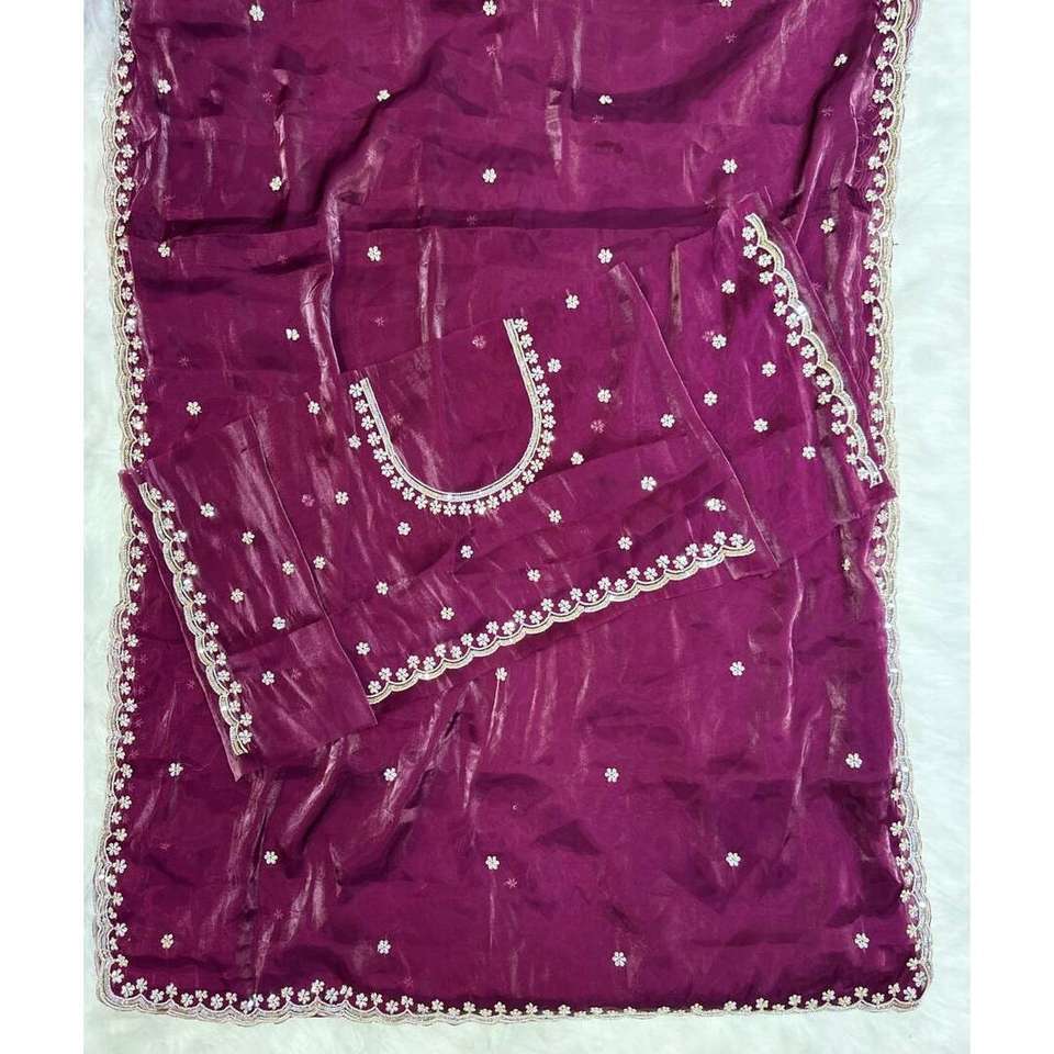 FANCY SECUENCIA DE SECUENCIA TRABAJO A MANO SAREE CON BLUSA SIN COSTAR VINO