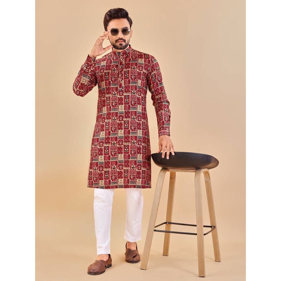 FASHIOANBLE FOIL DE ALGODÓN IMPRESO KURTA CON PAYJAMA MAROON