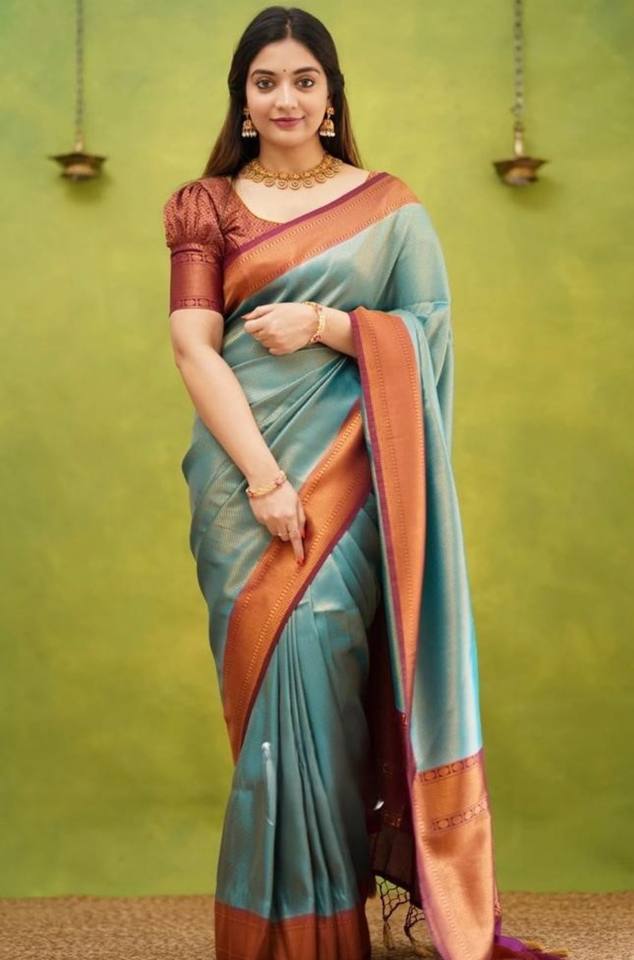 BANARASI DE MODA SUAVE SEDA TEJIDO TRABAJO SAREE CON BLUSA SIN COSTAR DESPIECE PRECIO AL POR MAYOR ROPA ÉTNICA SKY