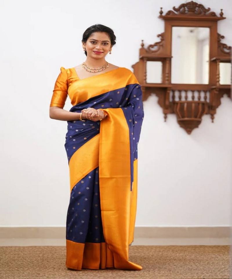 BANARASI DE MODA SUAVE SEDA TEJIDO TRABAJO SAREE CON BLUSA SIN COSTAR DESPIECE PRECIO AL POR MAYOR ROPA ÉTNICA AZUL