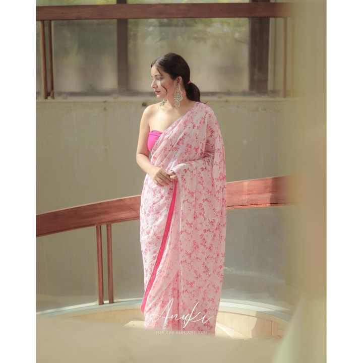 FASHION GEORGETTE DIGITAL PRINT CROCHET WORK SAREE CON BLUSA DESCOSTADA ROSA