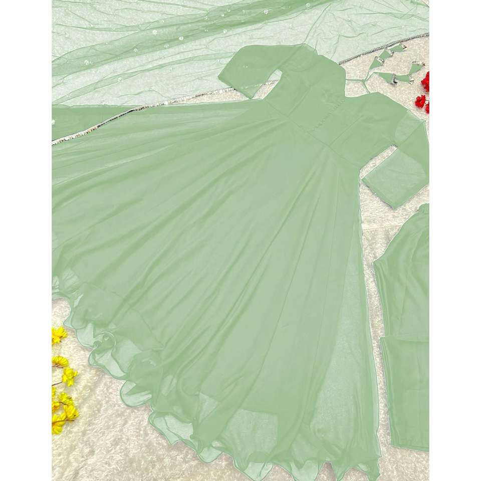 VESTIDO DE TRABAJO CON VOLANTES GEORGETTE A LA MODA CON DUPATTA VERDE CLARO