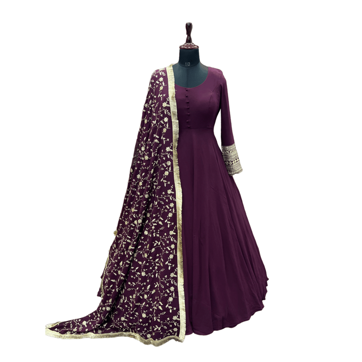 MODA GEORGETTE SECUENCIA ZARI TRABAJO VESTIDO PENT CON DUPATTA VINO