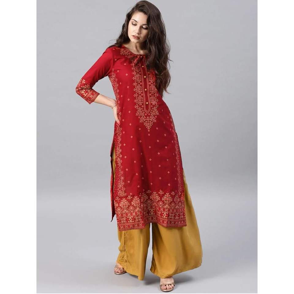 FASHION HEAVY RAYON FOIL PRINT ORK NAYRA CUT KURTI RED